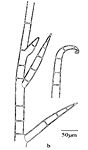 Thallus dark-green, thin filiform, tufted and caespitose. Tufts dense, soft. Litophyte. In littoral and sublittoral in semi-sheltered localities. occuring not often. Bipolar species.