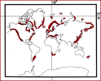 and rocks of the surf littoral, frequent. widely distributed, bipolar